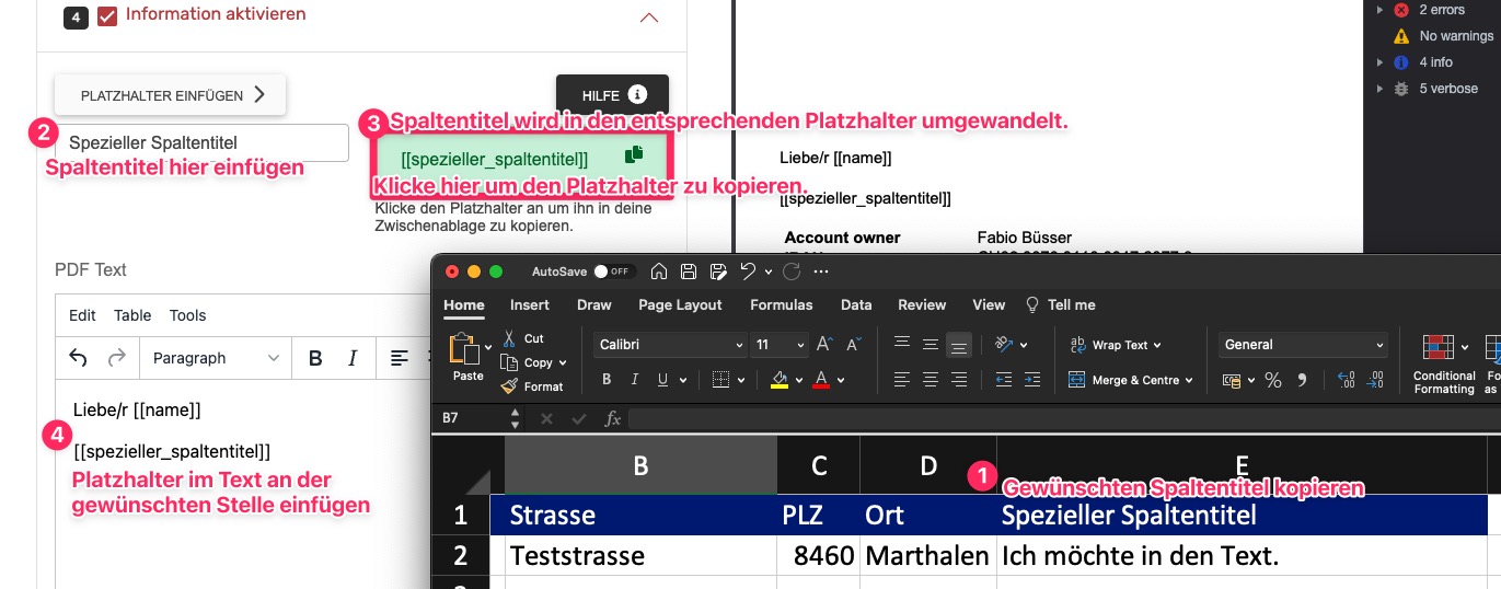 Spaltentitel können individuell konfiguriert werden. Künftige Imports sind so ohne Aufwand sofort druck-bereit.
