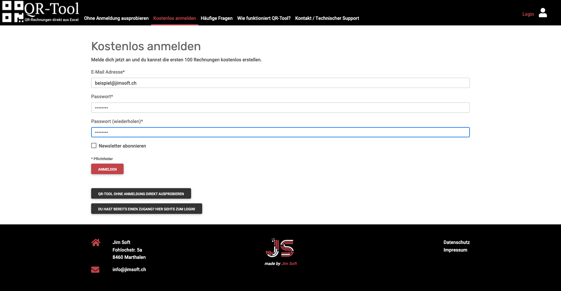 Du willst die neuen Zahlscheine mit QR-Code erstellen? Mit JimSoft QR Invoice kannst du das im Handumdrehen erledigen. Wir bieten dir eine einfache, benutzerfreundliche Webanwendung, mit der du die neuen Einzahlungsscheine schnell und unkompliziert erstellen kannst.